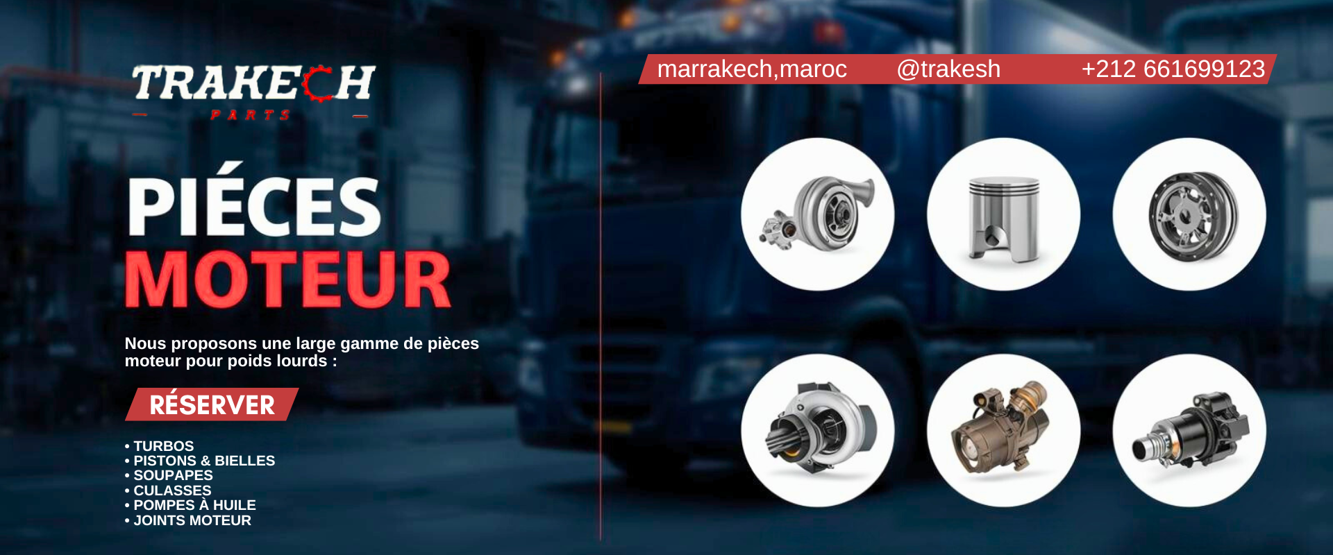 Réservez maintenantRéservez maintenant (1)Réservez maintenant (2)Réservez maintenant (3)Réservez maintenant (4)Réservez maintenant (5) Pourquoi « TRAKECH » Qualité, prix, service B2B Nos catégories de produits SYSTEME D'EMBRAYAGE MOTEUR SYSTEME DE FREINAGE SYSTEME PNEUMATIQUE Découvrez Nos Gammes de Produits Vue rapideREF:100-7562 CATERPILLAR Vue rapideREF:315-3381 CATERPILLAR Vue rapideREF:8N-7005 CATERPILLAR Vue rapideREF : 4410330570 MAN Vue rapideREF : 4410320312 MAN Vue rapideREF : AE4609 MAN Vue rapideREF : AE4440 DAF Vue rapideREF : 9730110000 DAF Vue rapideREF : 4410330600 MAN Vue rapideREF: 4410330610 MAN Vue rapideREF : 4750103330 MAN Vue rapideREF : K020024N50 MAN Vue rapideREF : K000914 MAN Vue rapideREF : 4630840310 DAF Vue rapideREF : 81125016100 MAN Vue rapideREF : PU911 MAN Pourquoi nous choisir ? Livraison rapide dans toutes les villes Emballage professionnel des pièces Garantie de qualité des produits Support réactif via WhatsApp Nos meilleures offres du mois Depuis 2011, nous accompagnons les professionnels du transport avec fiabilité et engagement PRODUITS SYSTEME D'EMBRAYAGE MOTEUR SYSTEME DE FREINAGE SYSTEME PNEUMATIQUE CONTACTER NOUS Adresse : RTE DE SAFI KM 13 LOCAL DR AIT MASSAOUD COMMUNE HARBIL MARRAKECH Téléphone : +212 6 61 69 91 23 Email : trakesh@trakesh.com Horaires : Lun–Sam : 9h – 18h © TRAKECH SARL - Tous droits réservés Partager sur Facebook Partager sur WhatsApp Partager sur E-mail